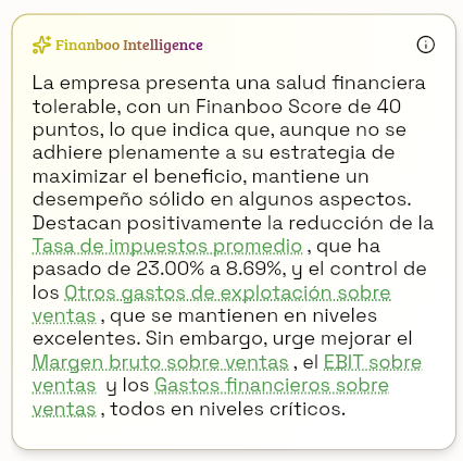 La IA de Finanboo no funciona como un asistente genérico. Cada explicación que genera incorpora el contexto completo de tu empresa: