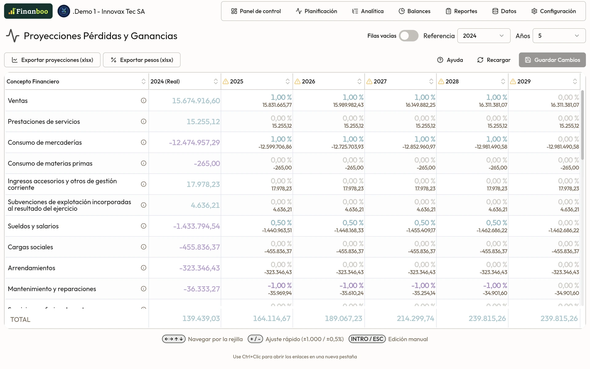 Proyecta tus cifras tomando cualquier año de referencia para múltiples años de forma sencilla.
