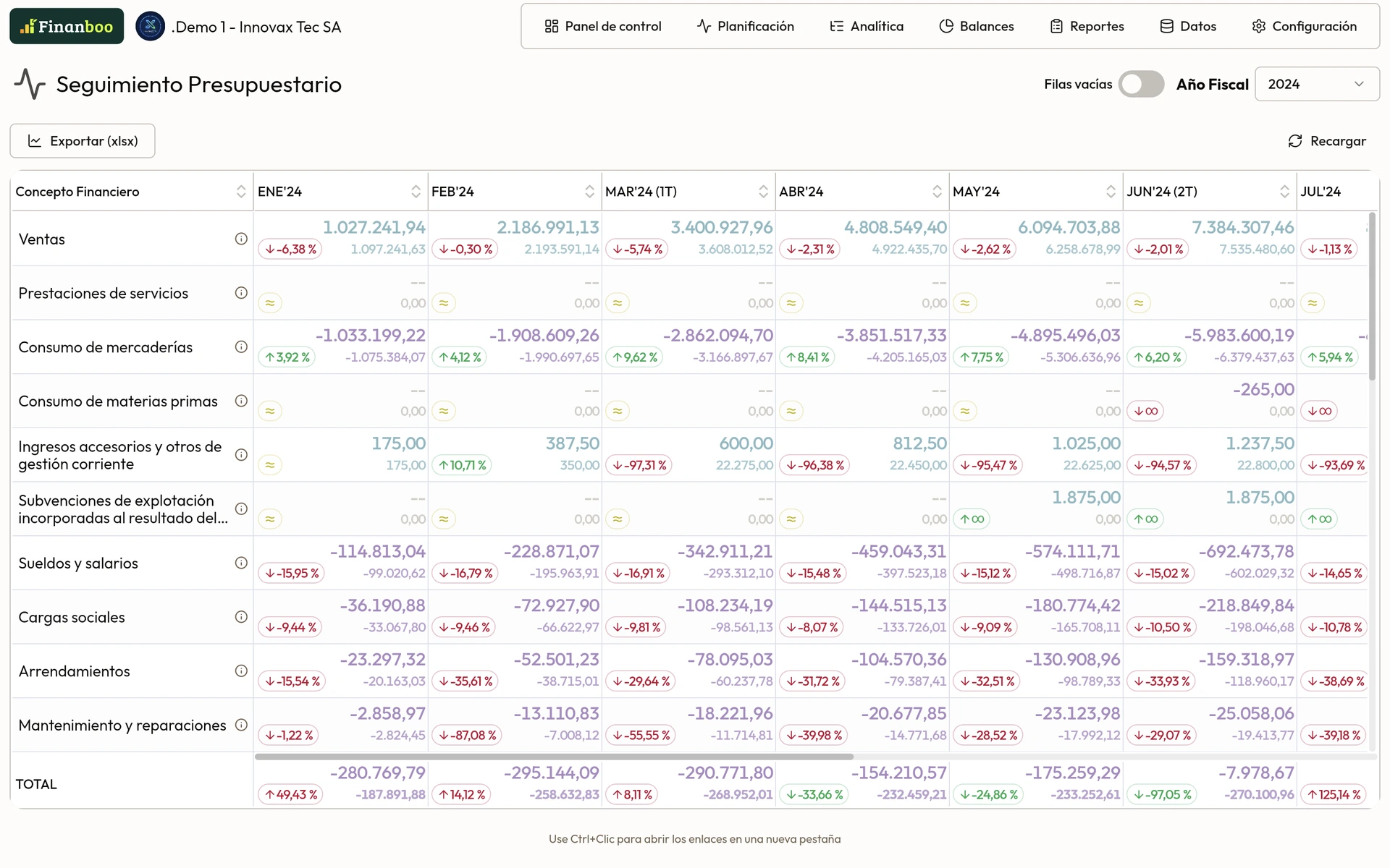 Visualiza los presupuestos y desviaciones con todo detalle.