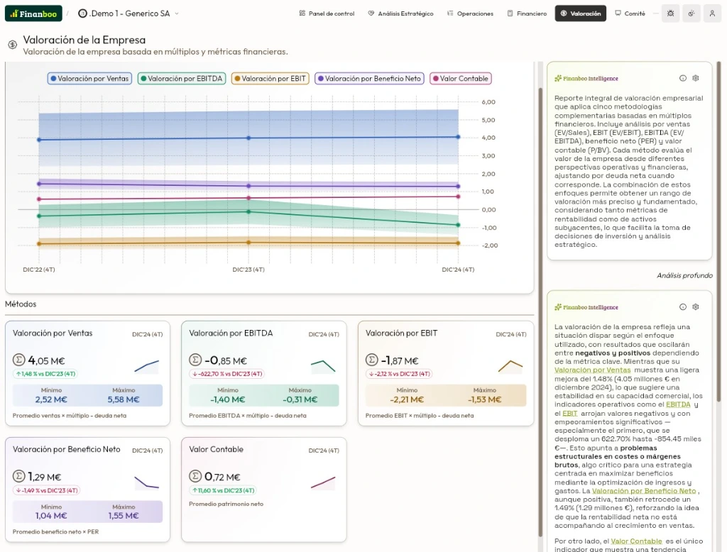 Método operativo intermedio que valora el beneficio antes de intereses e impuestos. Más conservador que EBITDA, más operativo que el beneficio neto.